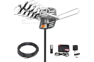 #1:HDTV Digital Antenna -Amplified HD Outdoor TV Antenna 150 Miles Range Motorized 360 Degree Rotation,Wireless Remote Control,Support UHF VHF 1080P 4K